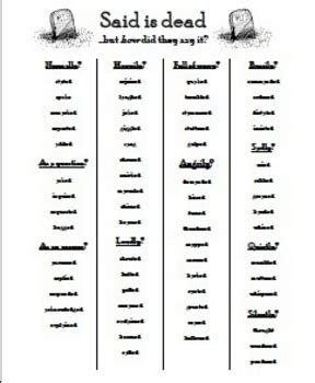 "Said is Dead" Synonym List by Write On Fourth Grade | TpT