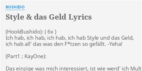 "STYLE & DAS GELD" LYRICS by BUSHIDO: : Ich hab, ich...